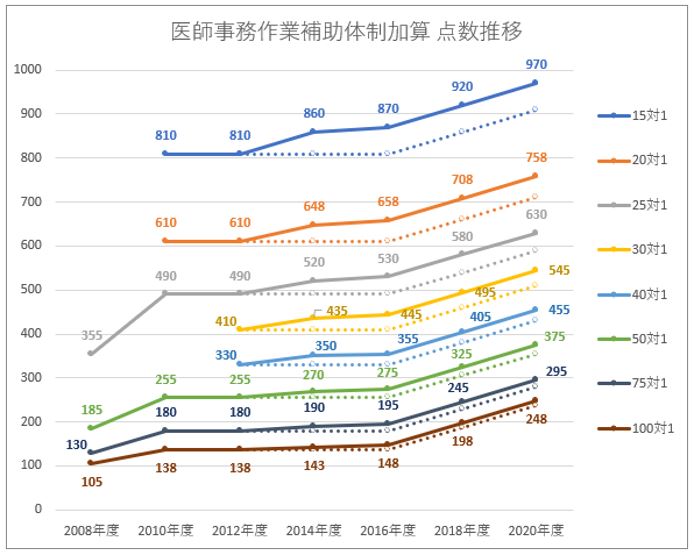 このような点数の伸びから、病院勤務医の負担軽減と、医師事務作業補助者へのタスクシフティングが重要視されていることの高まりを感じる。
