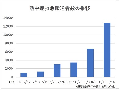 熱中症1週間の救急搬送者数、前週比1.9倍に