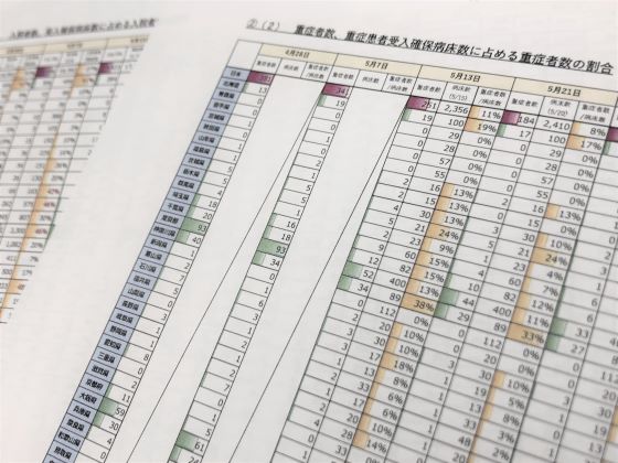厚労省が公表した新型コロナウイルス感染症の重症患者数などに関する資料