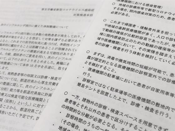 厚生労働省新型コロナウイルス感染症対策推進本部は、インフルエンザの流行に関する事務連絡(4日付)を、都道府県、保健所設置市、特別区に出した。季節性インフルエンザと新型コロナウイルス感染症(COVID-19)を臨床的に鑑別することが困難と指摘されていることに触れ、「次のインフルエンザ流行に備えて、発熱等の症状のある多数の患者に対して、地域において適切に相談・診療・検査を提供する体制を整備する必要がある」としている。【新井哉】
