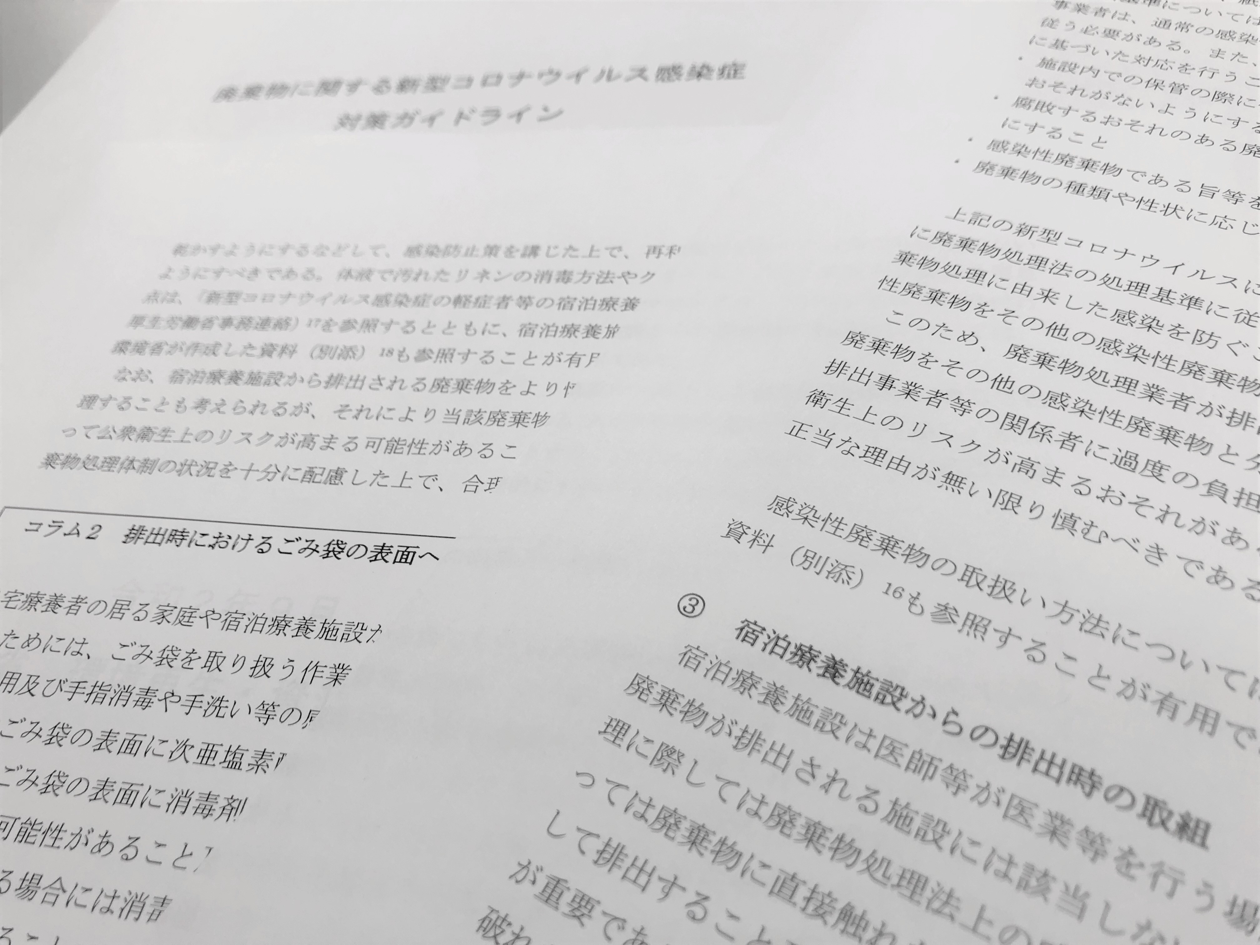 環境省が公表した「廃棄物に関する新型コロナウイルス感染症対策ガイドライン」