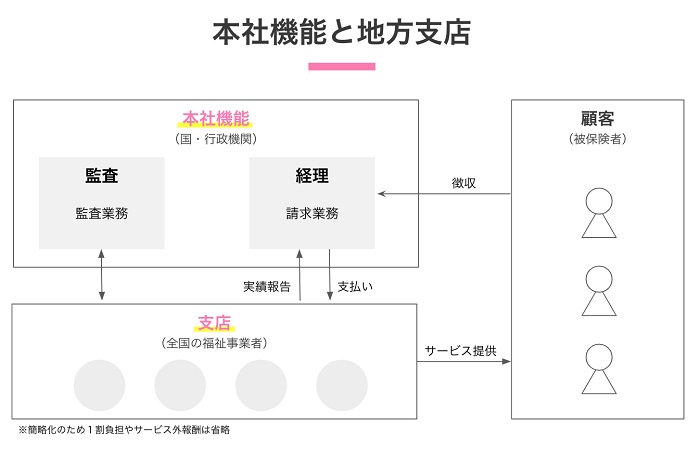 支店として捉えるならば、本社機能を持つ日本株式会社がお金を集めて配布する形は適切です。そして、顧客からの料金回収という経理部門の機能だけでなく、監査機能を行政が提供しているのも納得です。