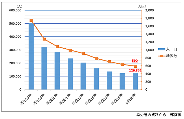 厚生労働省は26日、2019年度の「無医地区等調査」の結果を訂正したことを明らかにした。全国の無医地区は590地区で、5月29日の公表時に比べて11地区減少。対象人口も、1,541人減の12万6,851人となった。【松村秀士】