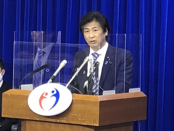 21年度予算案について説明する田村厚労相(21日、厚労省)