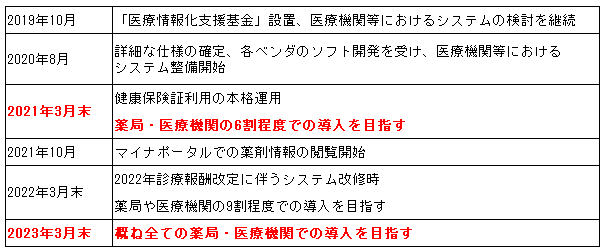 表 全体スケジュール(マイナンバーカードの健康保険証としての利用環境整備)