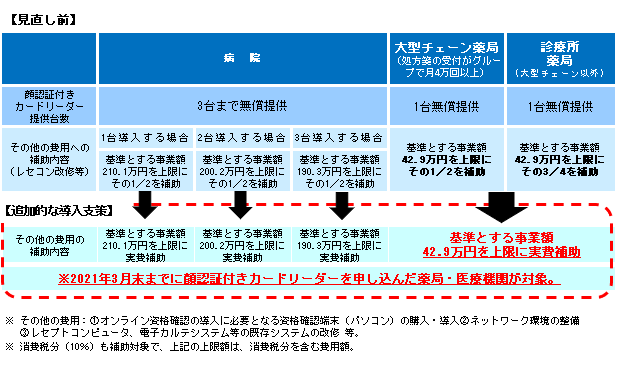 それに先立ち、厚労省は20年10月30日、カードリーダーの普及を後押しする「加速化プラン」を打ち出しました。21年3月末までに導入を申し込んだ場合に限り、カードリーダーの導入コストに対する補助を特例で追加するという内容です。
