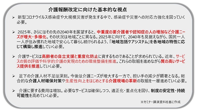 複雑な今改定に対応するため、オンラインなどを活用し、理解に努めるようセミナー受講者に呼び掛けた。その後、サービス事業所ごとに改定ポイントを解説した。