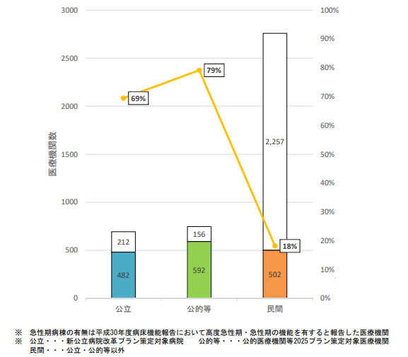 図1 自治体・公的等・民間別の新型コロナ患者受け入れ可能医療機関数・割合