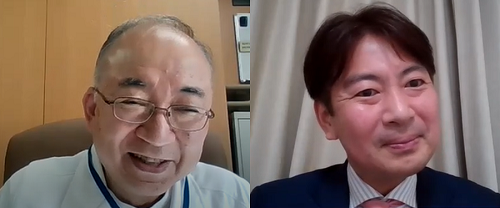 対談は3月12日、オンラインで実施。向井正也・市立札幌病院元病院長(左)、井上貴裕氏・千葉大学医学部附属病院・副病院長、病院経営管理学研究センター長、ちば医経塾塾長