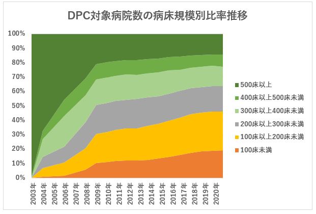 グラフ2 DPC対象病院数の病床規模別比率推移