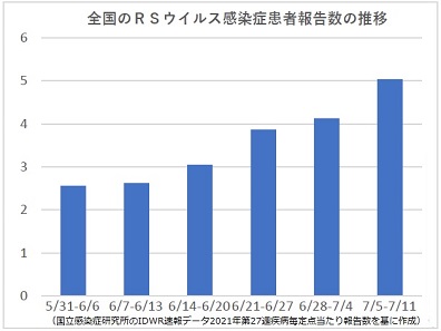 第27週の全国の定点医療機関当たりの患者報告数(小児科定点医療機関約3000カ所)は、前週比約22%増の5.04人で、定点当たりの報告数に変更された2018年以降で最も多い報告数となっている。 都道府県別の患者報告数は、三重が19...
