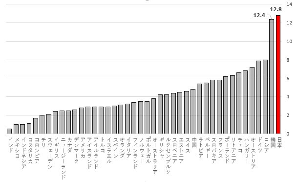 まず、人口に占める病院の病床数だ。長期入院や精神科の病床を含めると、人口千人当たり病床数は日本が12.8床(2019年)で、韓国の12.4床(同年)と並びOECD(経済協力開発機構)加盟国の中で飛び抜けて多い=図1=。