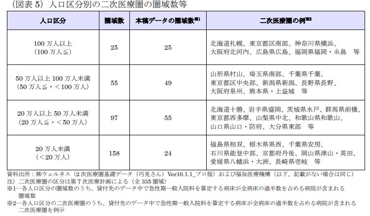 分析に当たっては、二次医療圏を、▽100万人以上▽50万人以上100万人未満▽20万人以上50万人未満▽20万人未満-の4つの人口区分に分けている=資料1=。