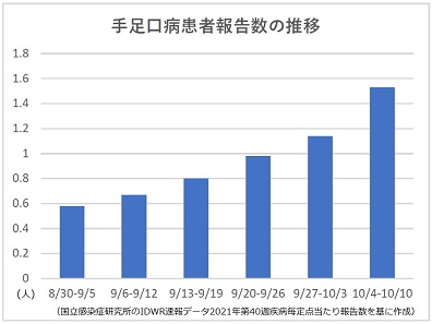 手足口病が8週連続増加、6県で警報基準値超