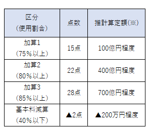 それに伴い、現在は「1-7日分」から「31日分-」までの5段階で定額の点数が設定されています。20年度には、そのうち「15-21日分」と「22-30日分」の点数が64点(3点減)、77点(1点減)にそれぞれ引き下げられましたが、「31日分-」は86点に据え置かれました。