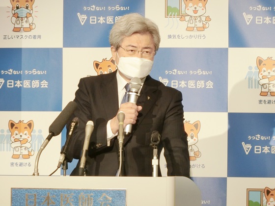 日本医師会の中川俊男会長は26日の記者会見で、新型コロナウイルス感染症のオミクロン株感染急増により医療現場で不足する抗原定性検査キットの緊急増産を政府に要請し、不足の実態調査と改善を求める考えを示した。【齋藤栄子】