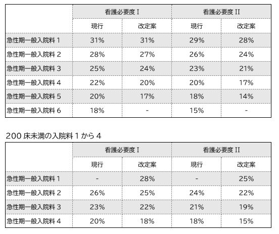 表 看護必要度の基準 改定内容 (上)全体(下)200床未満