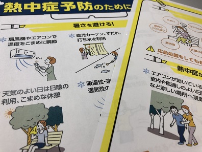 リーフレットでは、嘔吐や頭痛、倦怠感などの熱中症の症状を取り上げ、応急処置をしても症状が改善されない場合は医療機関を受診するよう呼び掛けている。 熱中症が疑われる人を見かけた場合は、「エアコンが効いている室内や風...