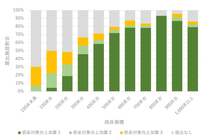 グラフ1 感染対策向上加算の届出状況(病床規模別)