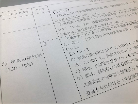 東京都陽性者登録センター登録者の陽性率の取り扱いを取り上げているモニタリング会議資料