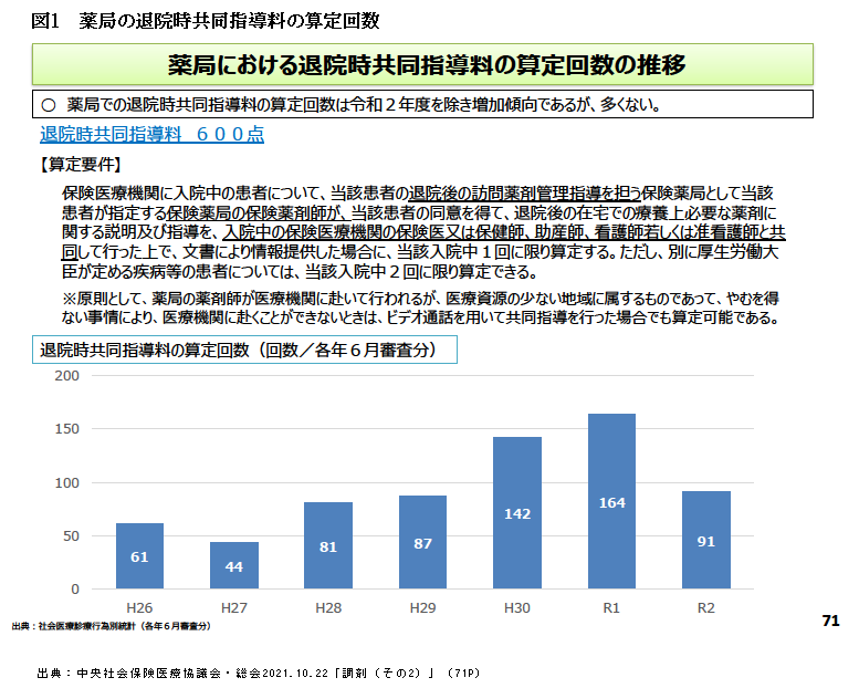 退院時共同指導での病院薬剤師と薬局薬剤師との連携、薬薬連携が点数評価され、ビデオ通話による参加も制限がなくなったことから、薬局の退院時共同指導への参加がしやすくなりました。算定回数も増加していくと見込まれます。