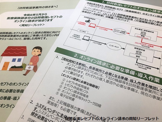 厚生労働省は、都道府県などに出した事務連絡で、2024年4月診療分から、訪問看護レセプトのオンライン請求を開始する予定であることを説明し、関係団体・機関などに対し、オンライン診療に関するリーフレットや資料を周知するよう求めた。【新井哉】