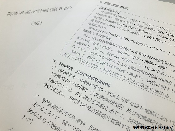 内閣府が18日に公表した第5次障害者基本計画(2023-27年度)の案では、精神疾患について、患者の状態像や特性に応じた精神病床の機能分化を進める方向性を示している。【新井哉】