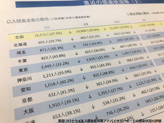 厚生労働省は、22日に開催した第117回新型コロナウイルス感染症対策アドバイザリーボードの感染状況の評価などを公表した。病床使用率は全国的に低下傾向で、「すべての地域で3割を下回るなど低い水準にある」としている。【新井哉】