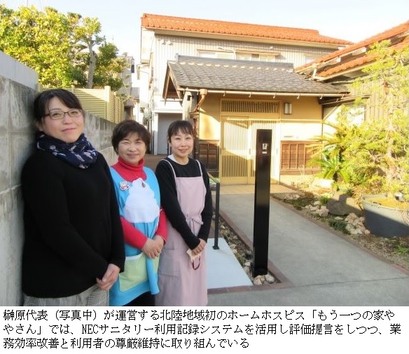 こうした人間の尊厳を重視した排泄ケアの取り組みを製品で支援する企業も出始めた。NECプラットフォームズは、排泄の自立を支援し、トイレの見守りと記録業務の効率化につながる「NECサニタリー利用記録システム」を榊原代表が運営する北陸地域初のホームホスピス「もう一つの家ややさん」に提供する。