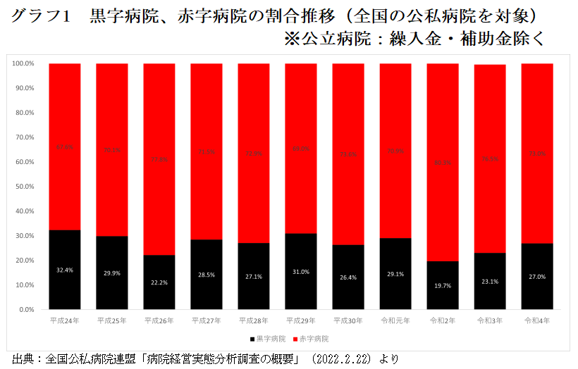 この割合は新型コロナ感染が影響を及ぼす前の結果でありますから、新型コロナ感染後はどの病院も病院経営状況はさらに厳しくなってきています。