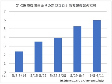 東京のコロナ患者報告数が5週連続で増加