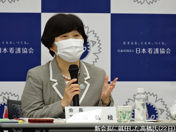 日本看護協会(日看協)の高橋弘枝会長は22日、就任後初の記者会見で、「看護職がキャリアアップに伴ってより高い職務の級に昇格できる環境作りを全ての現場で整えていけるよう、その支援に注力したい」と意欲を示した。【松村秀士】