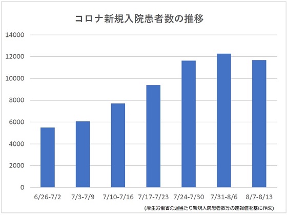 10週連続で増加していた新型コロナウイルス感染症の新規入院患者が減少に転じたことが、厚生労働省が公表した第32週(7-13日)の取りまとめで分かった。【新井哉】