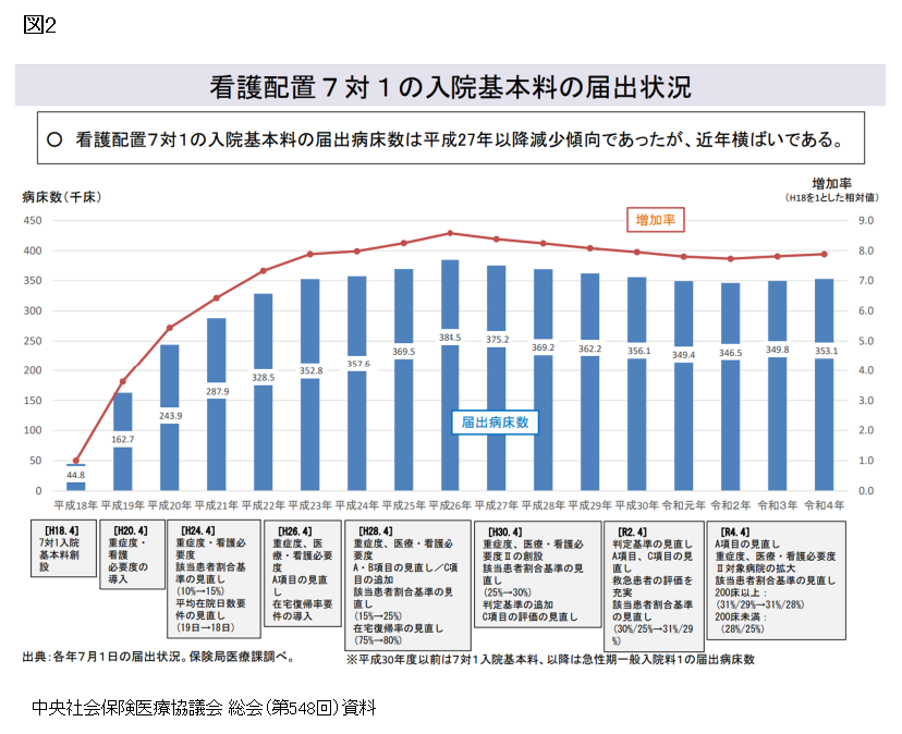 一方で、7対1の急性期病床は過剰な状況が続いている=図2=。