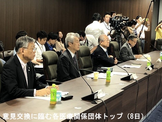 意見を交わしたのは、加藤厚労相と松本吉郎・日本医師会会長、高橋英登・日本歯科医師会会長、山本信夫・日本薬剤師会会長、相澤孝夫・日本病院会会長ら。