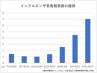 第37週の全国の定点医療機関当たりの患者報告数は前週比1.6倍の7.03人だった。過去10年の同期と比べて最も多い患者報告数となっている。 都道府県別で見ると、沖縄(20.85人)、千葉(14.54人)、愛媛(12.07人)、佐賀(11.95...