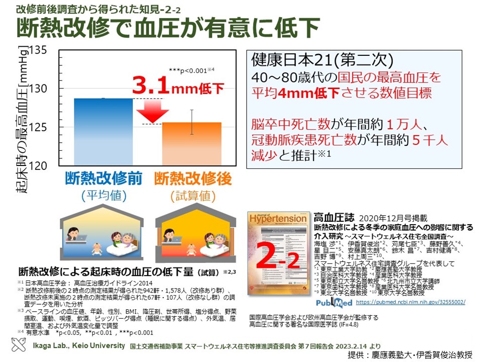 -この調査では、断熱改修後には男女合わせた試算として「起床時の血圧が平均で3.1mmHg低下した」という分析が示されています。どれくらいのインパクトなのでしょうか。