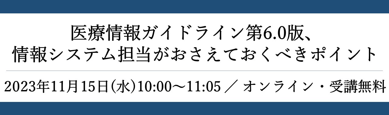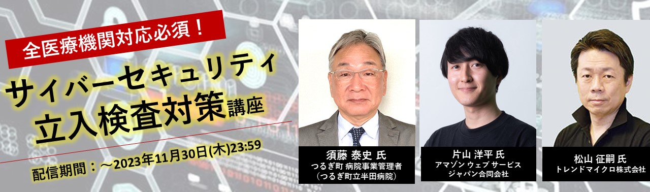 10月17日(火)に開催するCBセミナー「全医療機関対応必須!サイバーセキュリティ立入検査対策講座」では、今回インタビューをした片山氏と実際にサイバー攻撃を受けた、徳島県つるぎ町立半田病院の須藤泰史氏(病院事業管理者)、トレンドマイクロの松山征嗣氏がタッグを組み、今後の対策について語ります。サイバーセキュリティ対策が義務付けられた医療機関にとって必見の内容です。