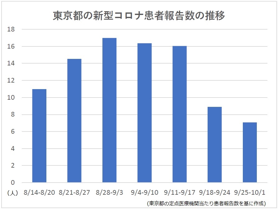 東京都のコロナ患者報告数が減少傾向