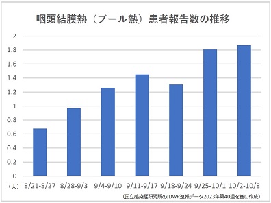 第40週の全国の定点医療機関当たりの患者報告数(小児科定点医療機関約3,000カ所)は、前週比3.3%増の1.87人で、26都道府県で前週を上回っている。 都道府県別で見ると、福岡(5.83人)、沖縄(4.97人)、大阪(3.82人)、奈良...