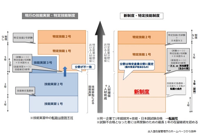有識者会議では、主に技能実習と特定技能に焦点を絞り、議論を重ねてきた。技能実習は「本国への技能移転」を趣旨として開始された制度で、介護施設などの下で一定期間に限り受け入れ、OJTを通じて技能を持ち帰るというもの。一方、特定技能は人手不足への対応として、一定の専門性や技能を持つ即戦力となる外国人を介護や建設など12分野に限り受け入れている制度。
