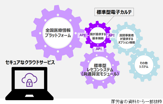関連のシステムについては、クラウドベースで構成した上で国が対象の施設に共通した必要最小限の基本機能を開発。それぞれの施設のニーズに応じたオプション機能を民間事業者などが提供できるような構成を目指す=図=。