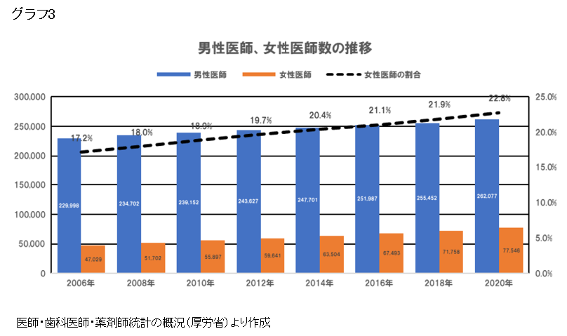 日本国内における医師数は20年現在、約34万人と言われています(1982年のほぼ2倍)=グラフ3=。