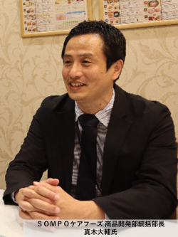 2つ目が、徹底した品質チェックと現場の声を踏まえた商品開発。東京都(芝浦)に研究・ラボを設置し、品質チェックや美味しさの追求、新商品の開発などを手掛けている。例えばハンバーグであれば、焼き色やジューシーさを調理温度や保水率を確認しながら、試作を繰り返し、美味しさをとことん追求している。そして、美味しさのベースを築いているのが、提供した食事を通じて得たさまざまな意見だ。SOMPOケアによると、同社運営施設でのデリパックの配食数は1日当たり約8-9万食。真木氏は「提供した食事に対して各施設から意見が数多く上がり、その意見を踏まえながら、味付けの改善や新商品の開発に生かしています」と話す。