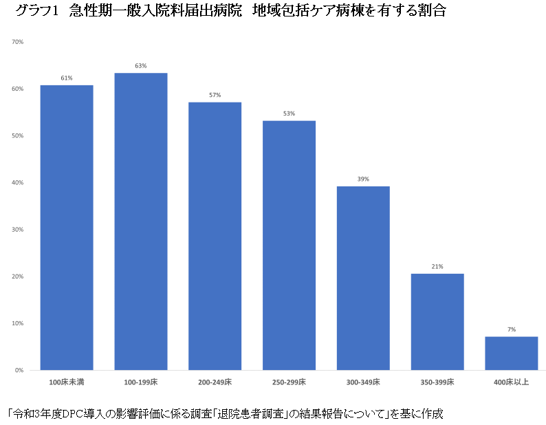 ただ、地域包括ケア病棟の設置は300床未満の病院での設置が多く、病床数によりスーパー地ケアに転換できるか違い出るだろう=グラフ1=。
