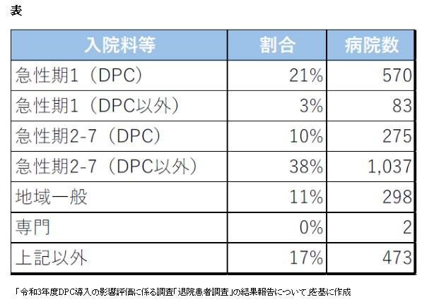 ここで、地域包括ケア病棟(入院医療管理料を含む)の病棟構成を見たものが、表であり、急性期一般入院料を届け出る病院が全体の72%を占めている。