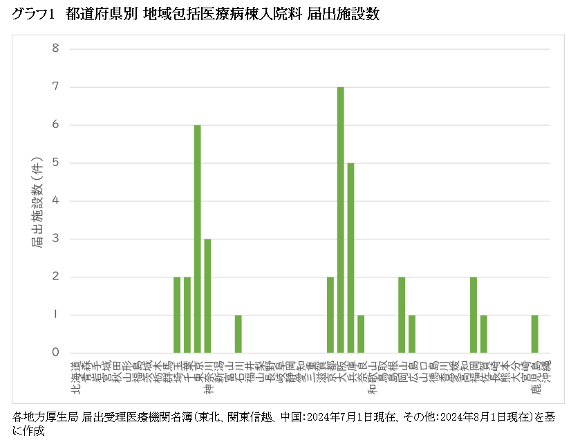 2024年度診療報酬改定で新設された地域包括医療病棟入院料は、全国ですでに36施設が届け出ている=グラフ1=。