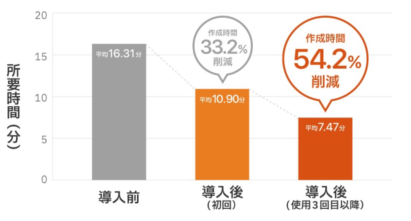 社会医療法人祐愛会織田病院(佐賀県鹿島市)では、2024年3月から電子カルテと連携した「OPTiM AI ホスピタル」の運用を開始した。導入効果として最も大きかったのは、入退院時看護サマリー作成時間の大幅な削減だったという。導入前は1件当たり平均16.31分を要していたが、導入直後に33.2%短縮の平均10.90分となり、使用3回目以降は54.2%短縮の7.47分まで効率化された。使用回数を重ねるごとに、作業効率が向上しているという。