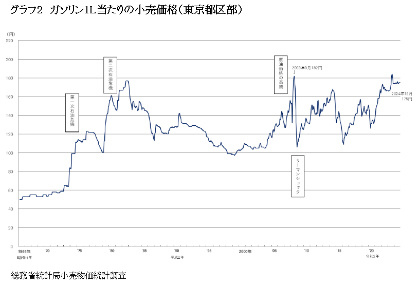 デフレが長く続いたわが国において、必ずしも悪い面ばかりではないのかもしれないが、これでは病院の財務は破綻してしまう。グラフ2は東京都内のガソリン価格の推移を見たものであり、こちらも著しい上昇基調にある。