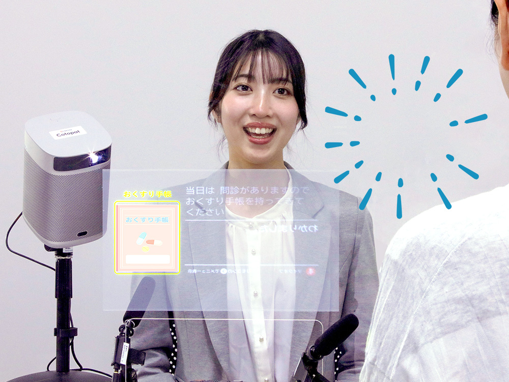 「Cotopat」は聴覚に障害のある人や高齢者の聞こえにくさを解消するために開発され、2023年8月に販売が始まった。元々は受付窓口担当者の言葉を、相手に表示する一方向のコミュニケーションツールだった。その後バージョンアップを経て、134言語に対応した外国語翻訳機能も備えた双方向表示が可能になった。外国人への検査説明や入院説明もスムーズに行える。